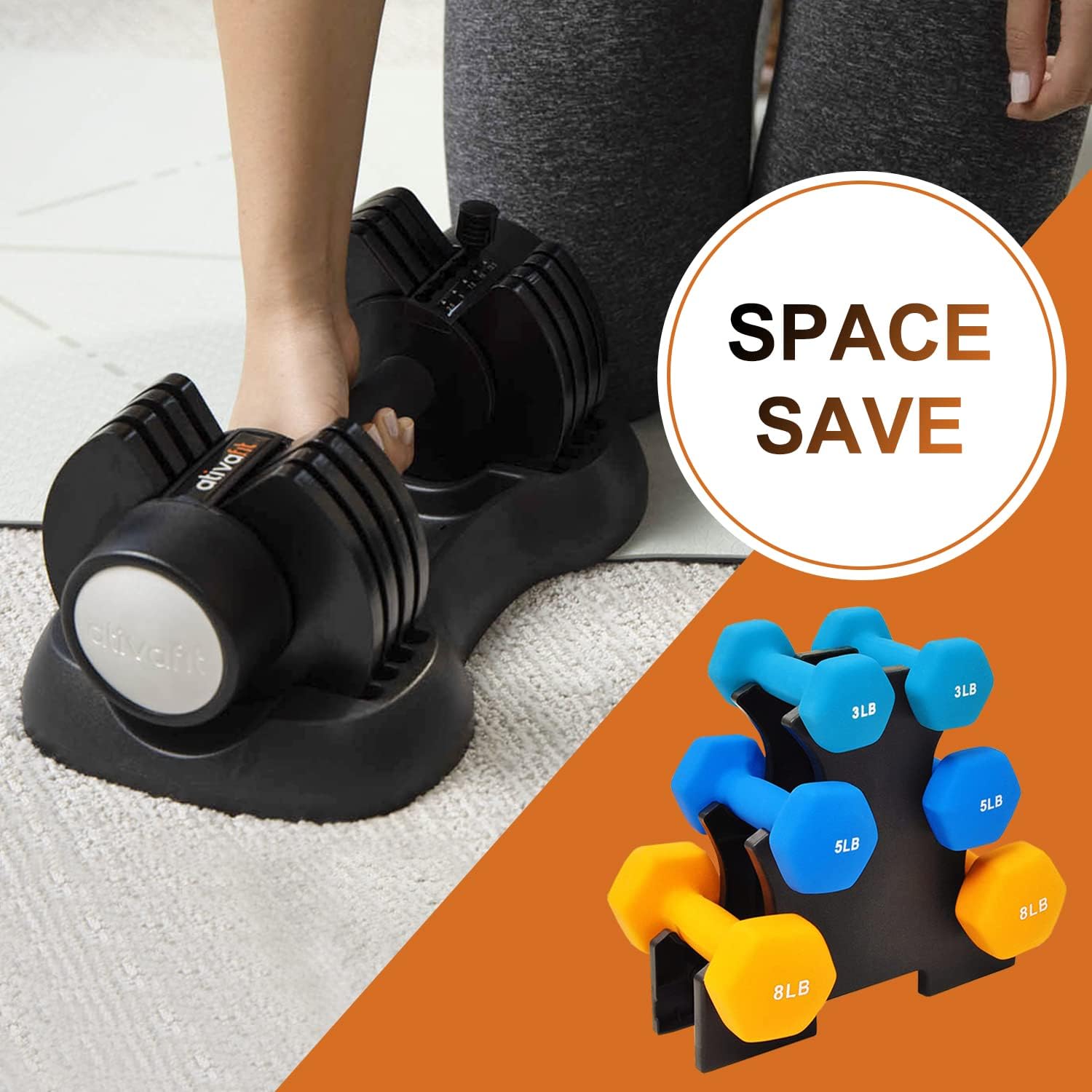 【90% Space Saving】With 10 levels of weight adjustment, owning a single ATIVAFIT adjustable dumbbell set is equivalent to having 10 regular dumbbells. Coupled with the tray for storage, it significantly reduces the space required to store dumbbell equipment, saving up to 90% of space. No need to spend time and money at the gym, you can now train even at home.