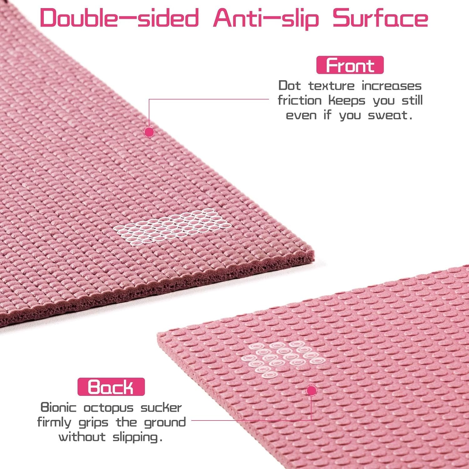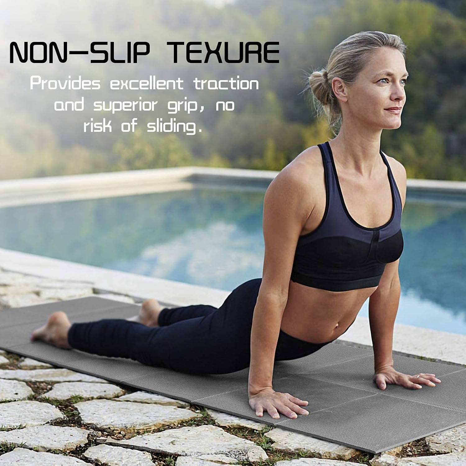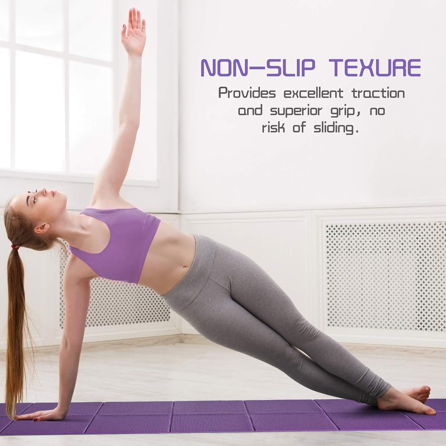 🏅ANTI-TEAR & ECO-FRIENDLY – As a product to help us keeping healthy, the material of yoga mats must be made of harmless to humans. Our foldable yoga mat is made by upgrade high quality PVC material which is soft, non-toxic and eco-friendly better than NBR. Our yoga mat is designed with 3 layers. The core layer between octopus imitated layer for gripping and memory foam layer for quick resilience is tear resistant layer which provides high durability for our yoga mats.
