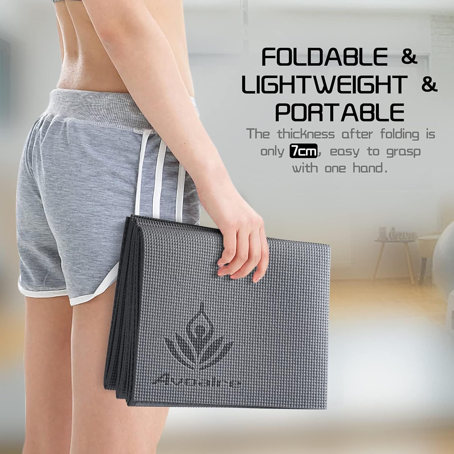 🏅FOLDABLE & PORTABLE – Avoalre yoga mats with foldable design could be folded in 35cms square and the thickness is only 7cm, which is convenient to carry in one hand and storable. The folding yoga mat also fits on your suitcase, packsack or the carrying bag. Our foldable exercise mat will help you keeping training even you are traveling. The portable design helps everyone do exercise in everywhere!For the best experience, please unfold and air out your mat for 2 to 3 days before use.
