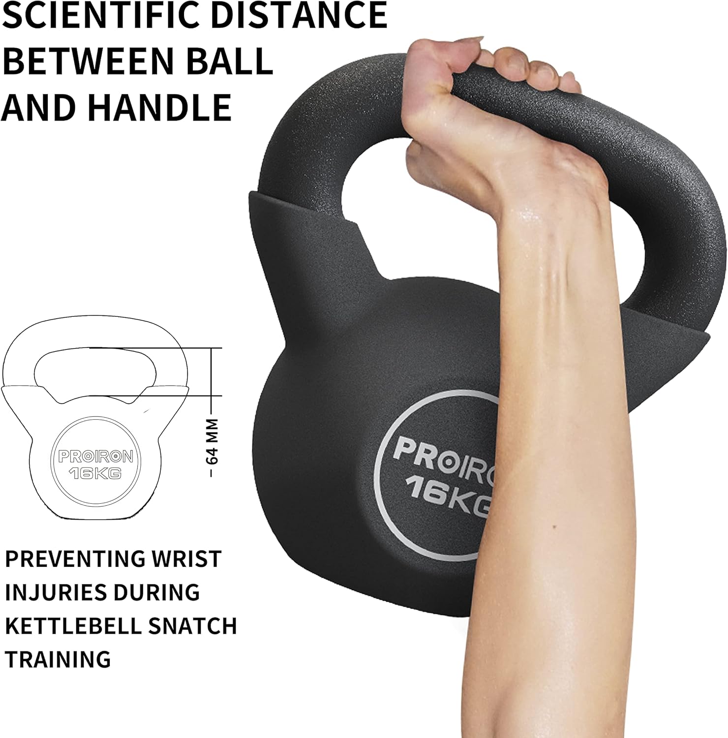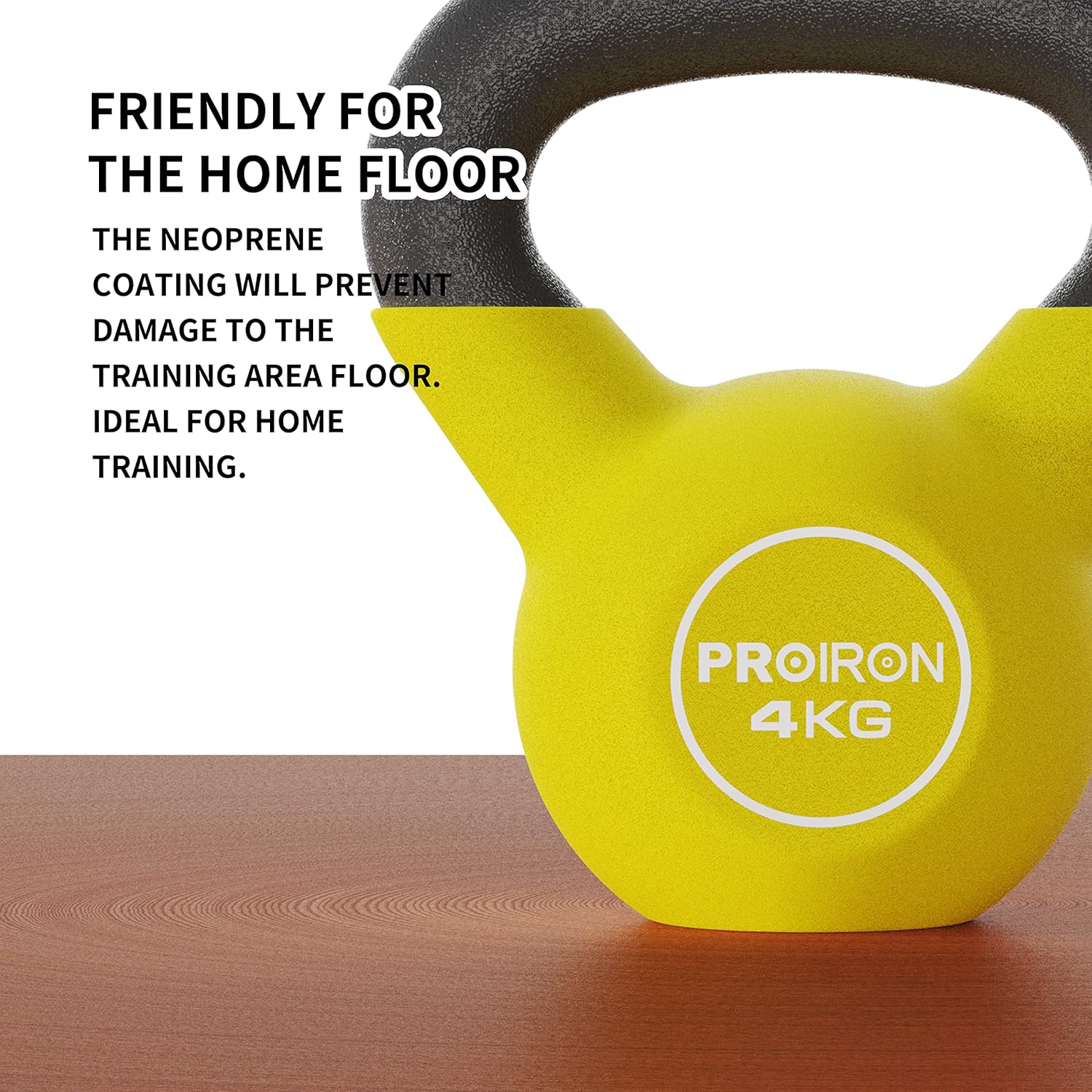 【Flat Bottom & Colour-Coded】- FLAT BOTTOM FOR STABILITY. PROIRON kettlebells ranges from 4kg to 20kg, suitable for both beginner and advanced. The range is colour-coded, easy for kettle weight selection