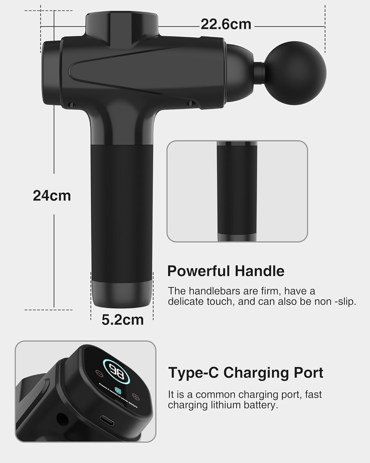 SUPER QUIET + LCD TOUCH SCREEN:Super silent massaging gun.Equipped with 3rd gen noise reduction technology, a high-torque motor, military-grade component parts,and acoustic absorbing material,the gun massage was tested to be under 45 decibels,the noise in the process is similar to talking with others. Professional body massager handheld with high definition LCD touch screen,you can clearly know the speed levels and remaining power at any time.Enjoy powerful but silent massage freely