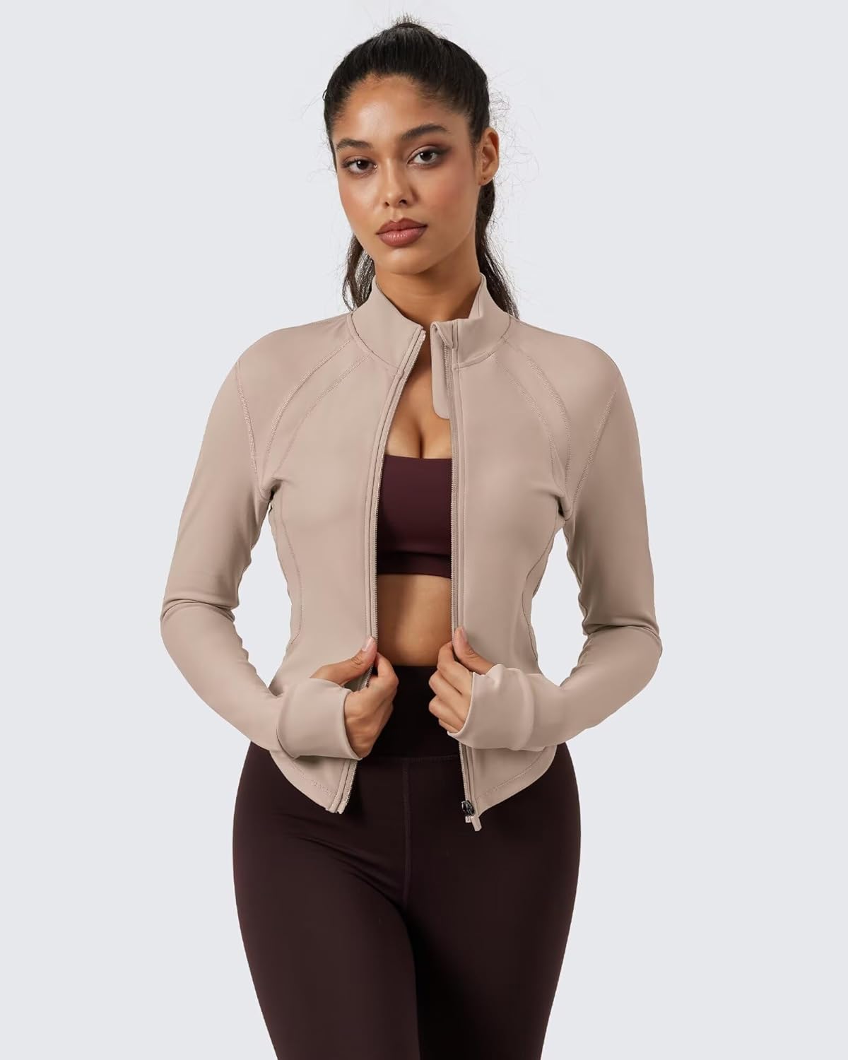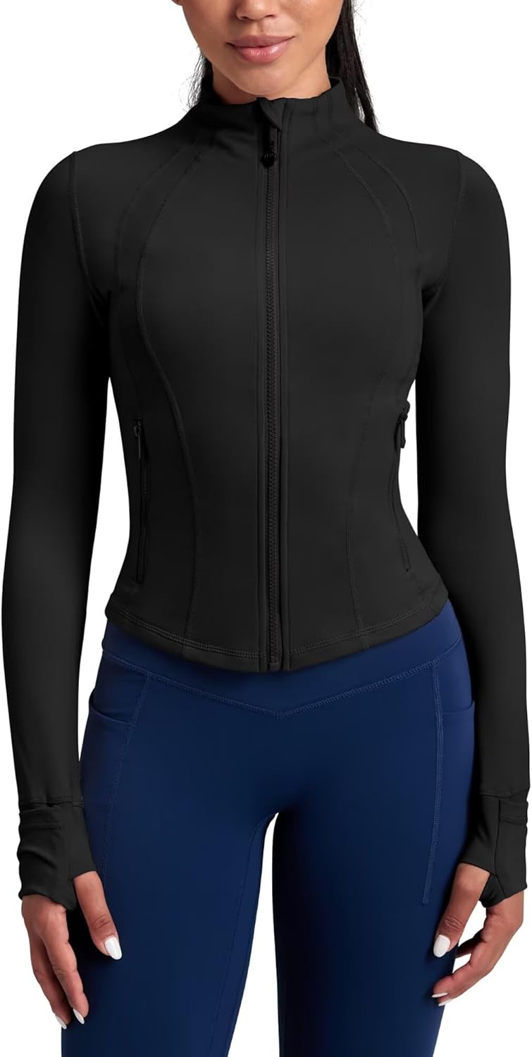 • Thumbholes: The zip up jackets for women is equipped with thumbholes that keep the sleeves securely in place and extend warmth to your wrists, ensuring enhanced comfort and protection during your active sessions.