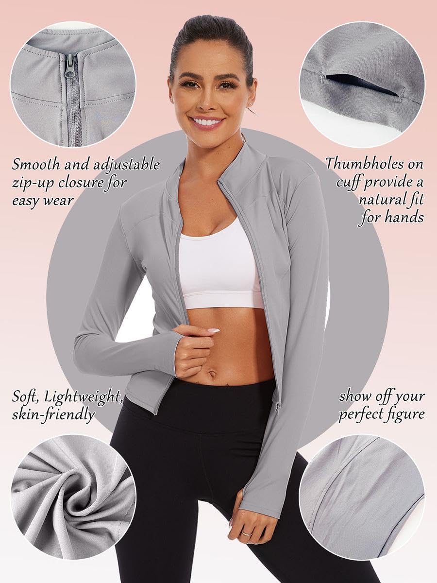 • 【Curved hem】Women running jacket. The length of the hem of the top is short, front and rear, left and right, which can better modify the body radian, visually elongate the legs, and increase the fluency of the body radian.It looks sexy and charming.