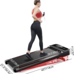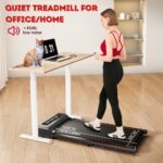 Compact and Easy to Store: Only 37.5 lbs17kg and 0.6m³footprint, you can move this standing desk treadmill with ease.You can place this under desk walking pad against a wall, under a sofa or under a bed, this mini treadmill is very compact and easy to store the small walking pad.