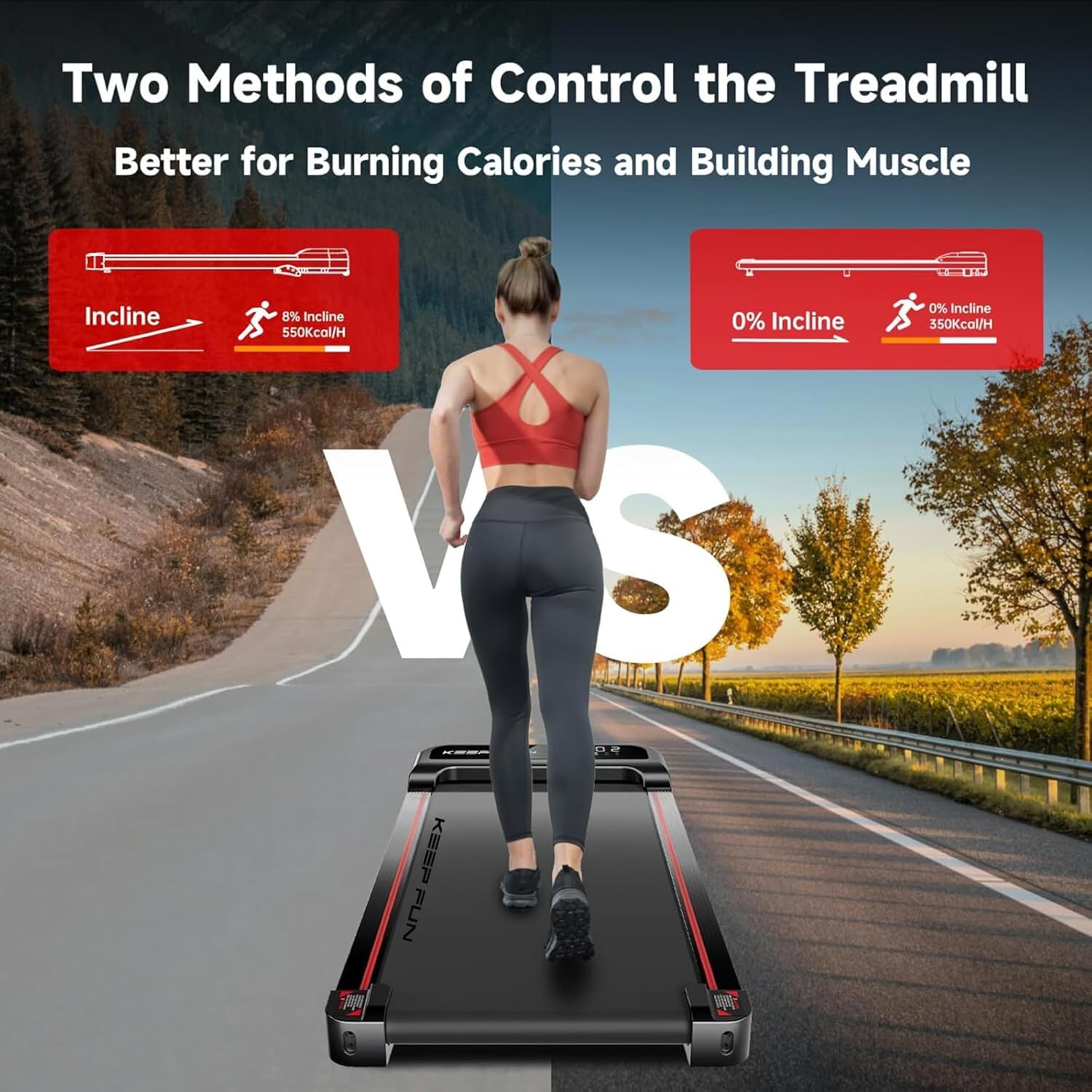 3 Window LED Function Display: KEEP FUN walking pad treadmill 300lbs136kg is designed with an upgraded 3-Window LED display, the LED display of under desk treadmill can show 3 kinds of exercise data at the same time. You can track your exercise speed, time, calories and distance without switching the treadmill walking pad while exercising when using this walking pad under desk.