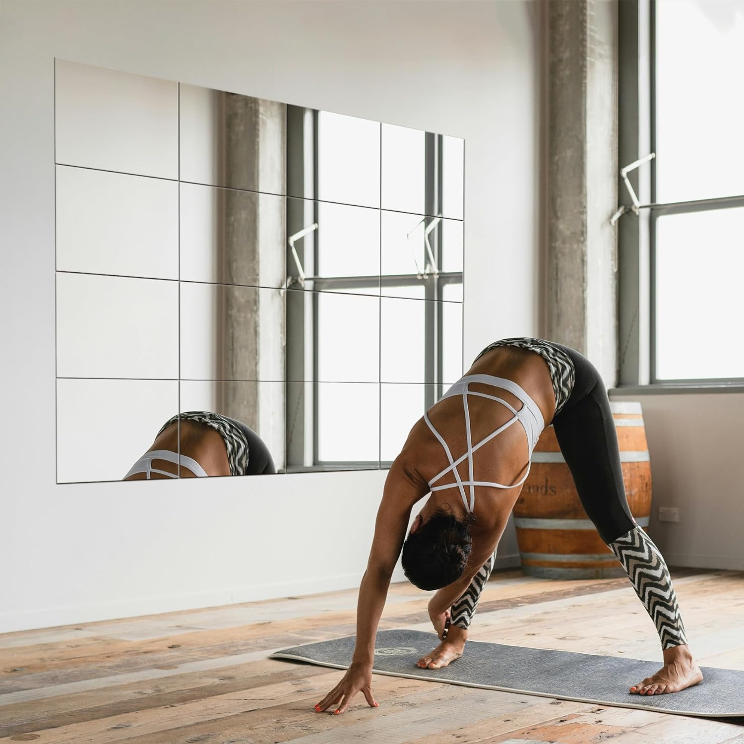 WIDE APPLICATION: Square mirror tiles could decorate bathroom, home gym, bedroom, which can be mounted on wall,tiles,closets,doors.