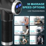 8 Massage Heads and 30 Adjustable Speeds : The Electric handheld percussion massage gun is equipped with 8 massage heads apply to every muscle group and varied massage needs of body parts for back, neck, shoulder, arms to aid in sore muscle relief.30 adjustable speed modefrom1,800-4,800 pulses per minute ,Choose the speed and massager heads that best suits your needs and enjoy the deep body massage