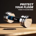 SUITABLE FOR HOME USE: The dumbbells are compact and can stand upright, so they are easy to store at home. They are made of steel without rubber layer and will not emit unpleasant odors, which would usually affect the mood of your exercise. The minimalist shape and highly polished surface make dumbbells look like artworks at home. The attached big rubber rings can be easily installed in the grooves of the dumbbells to prevent them from scratching the floor.
