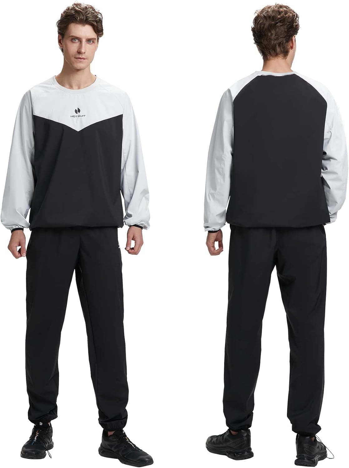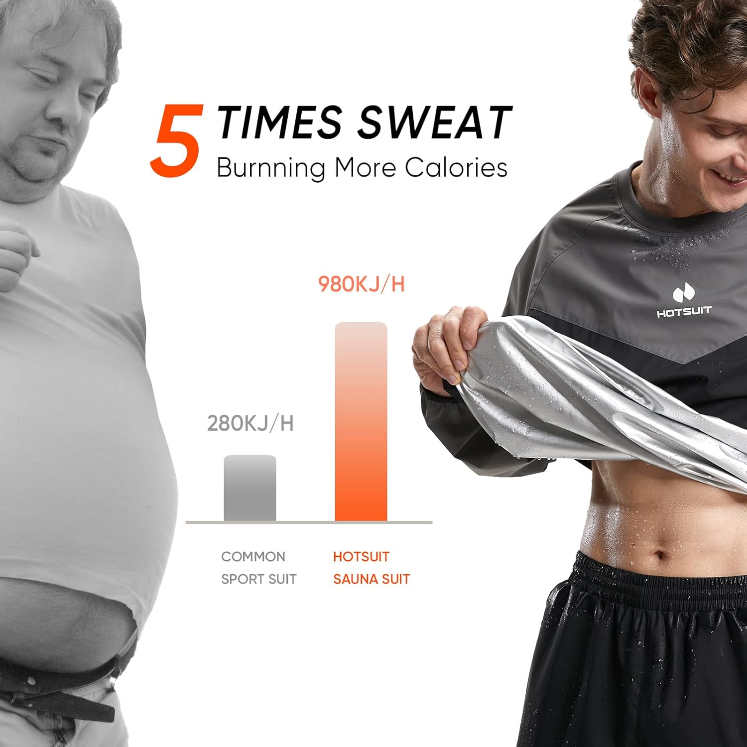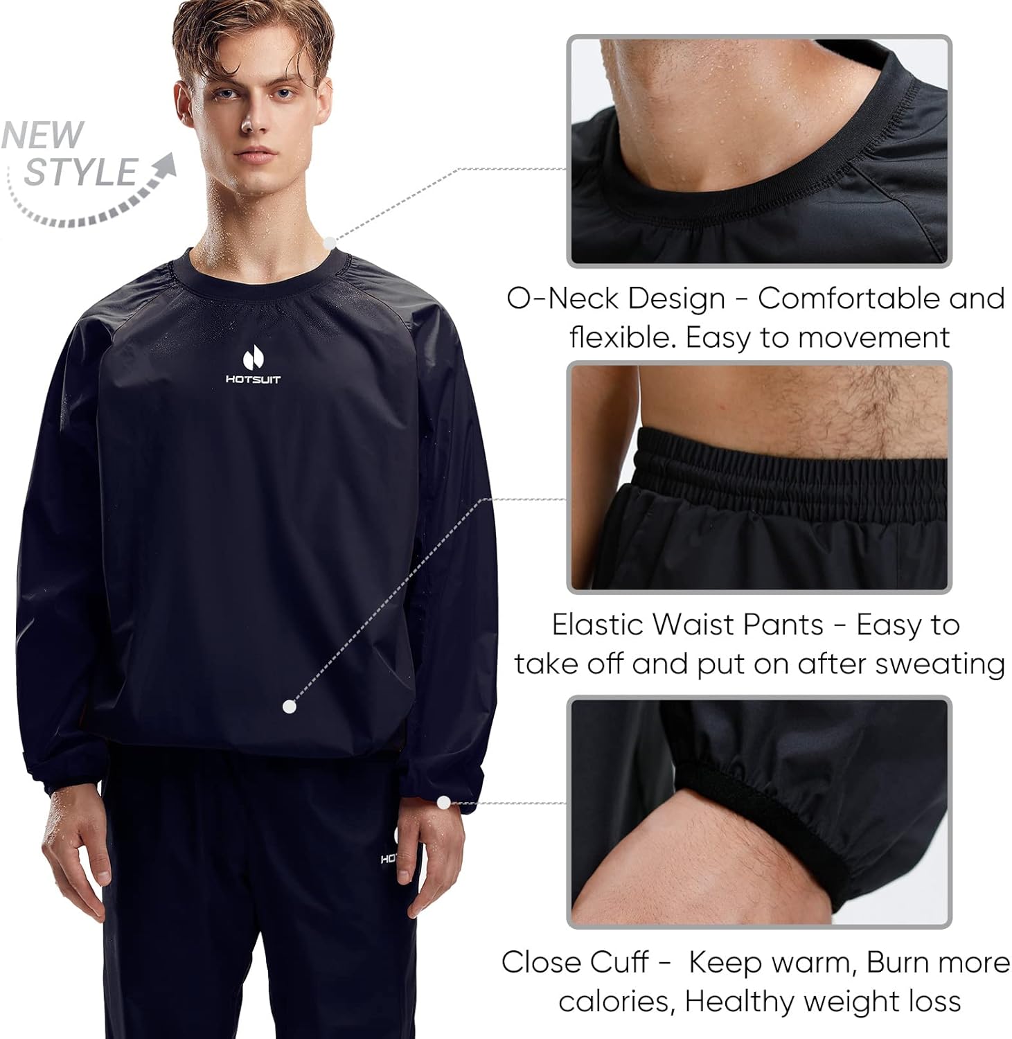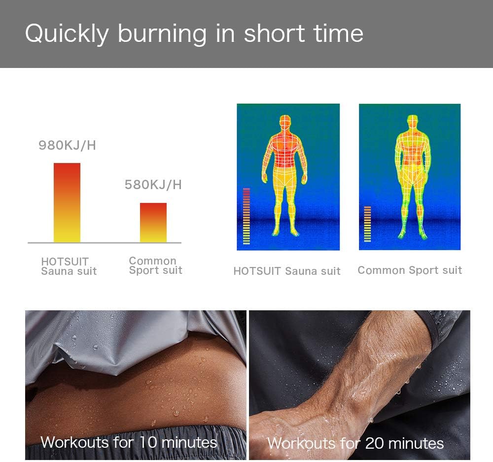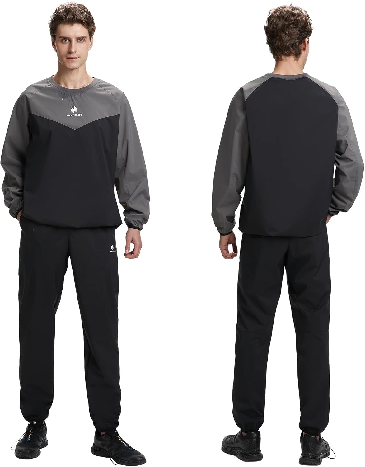- Lightweight, Not Affect the Movement and Exercise At All: Specially designed with HOTSUIT Wear-resistant fabric Silver-Heat REG V1.0, reflect the heat to body, make you 5 times sweat. Wear this HOTSUIT men Sweat Suit can help increase body temperature. Anti-rip material allow you do any movements during exercise