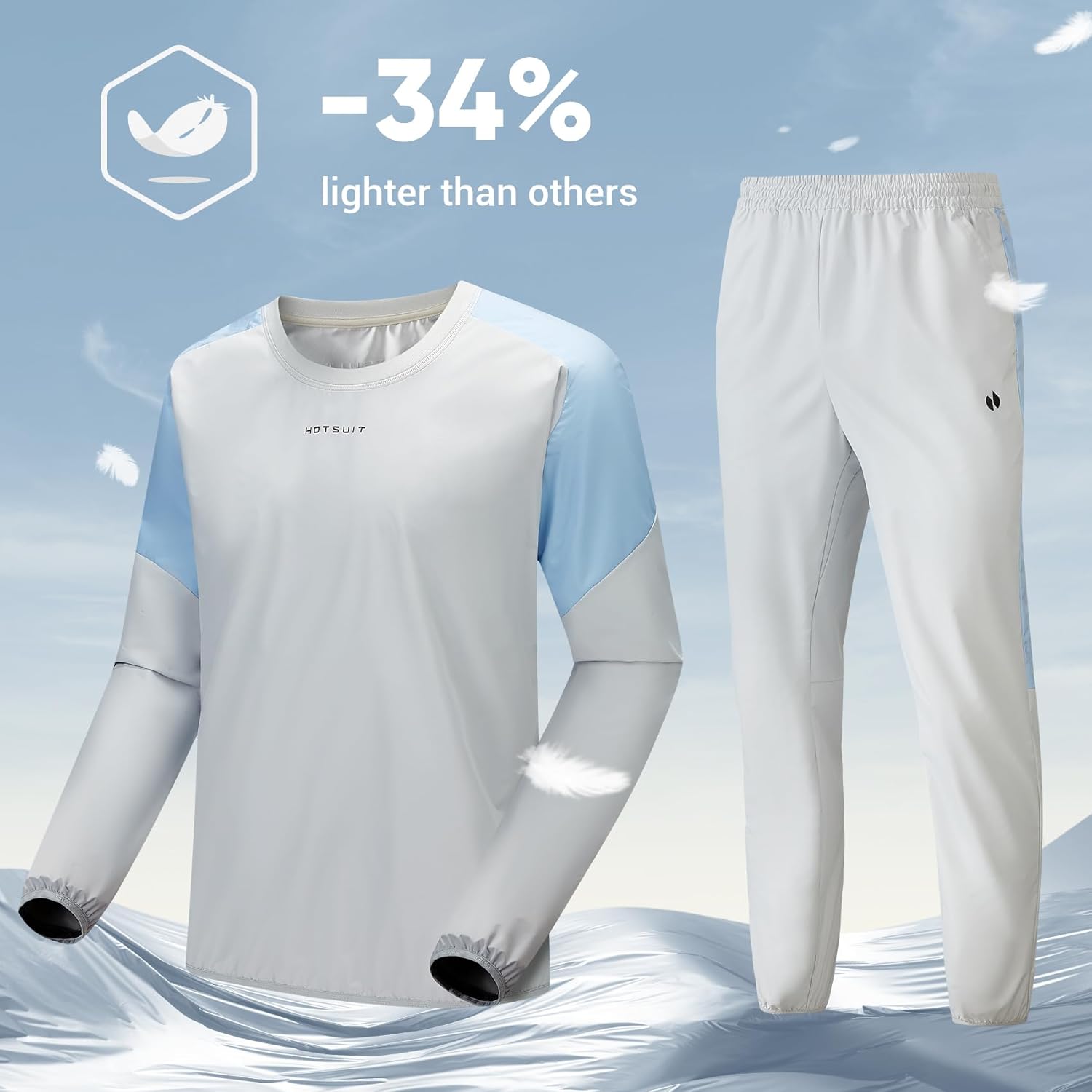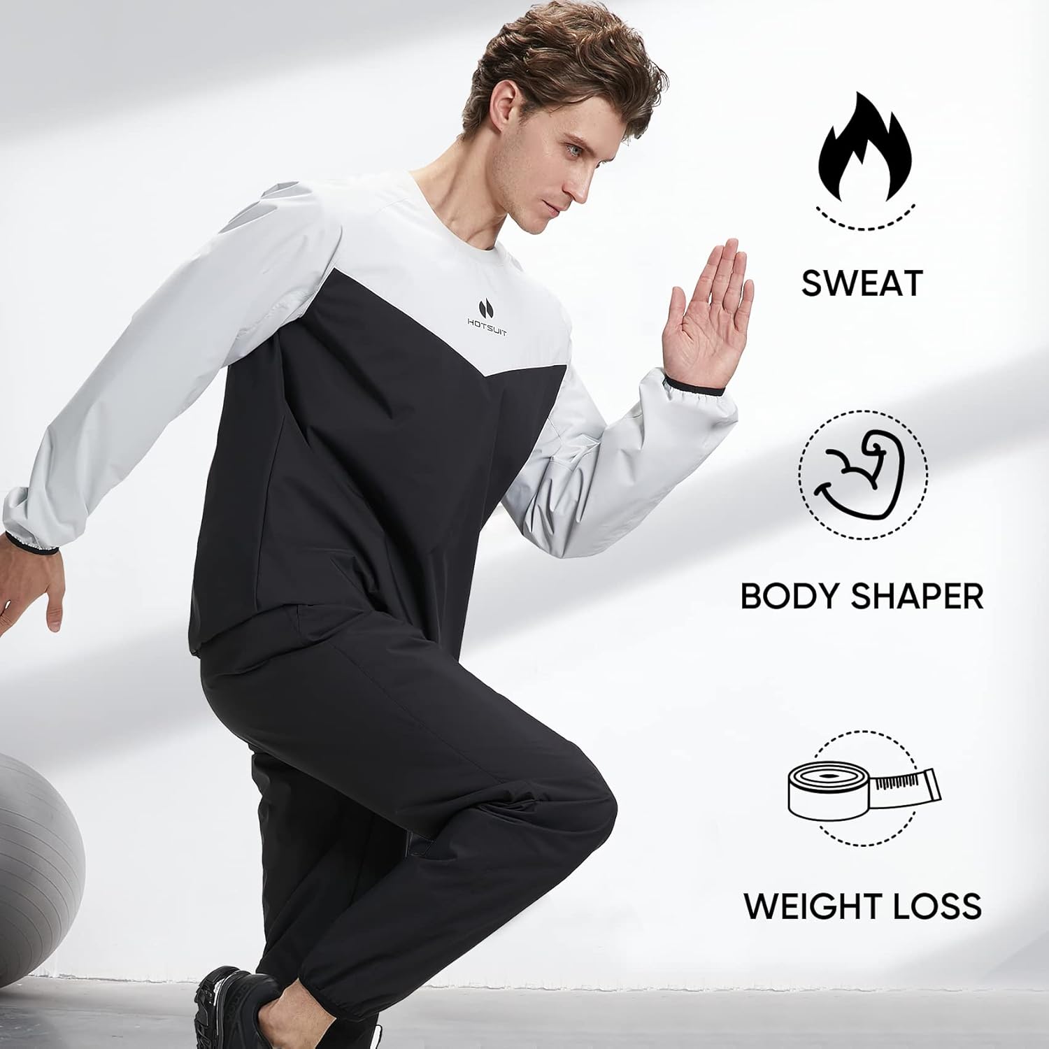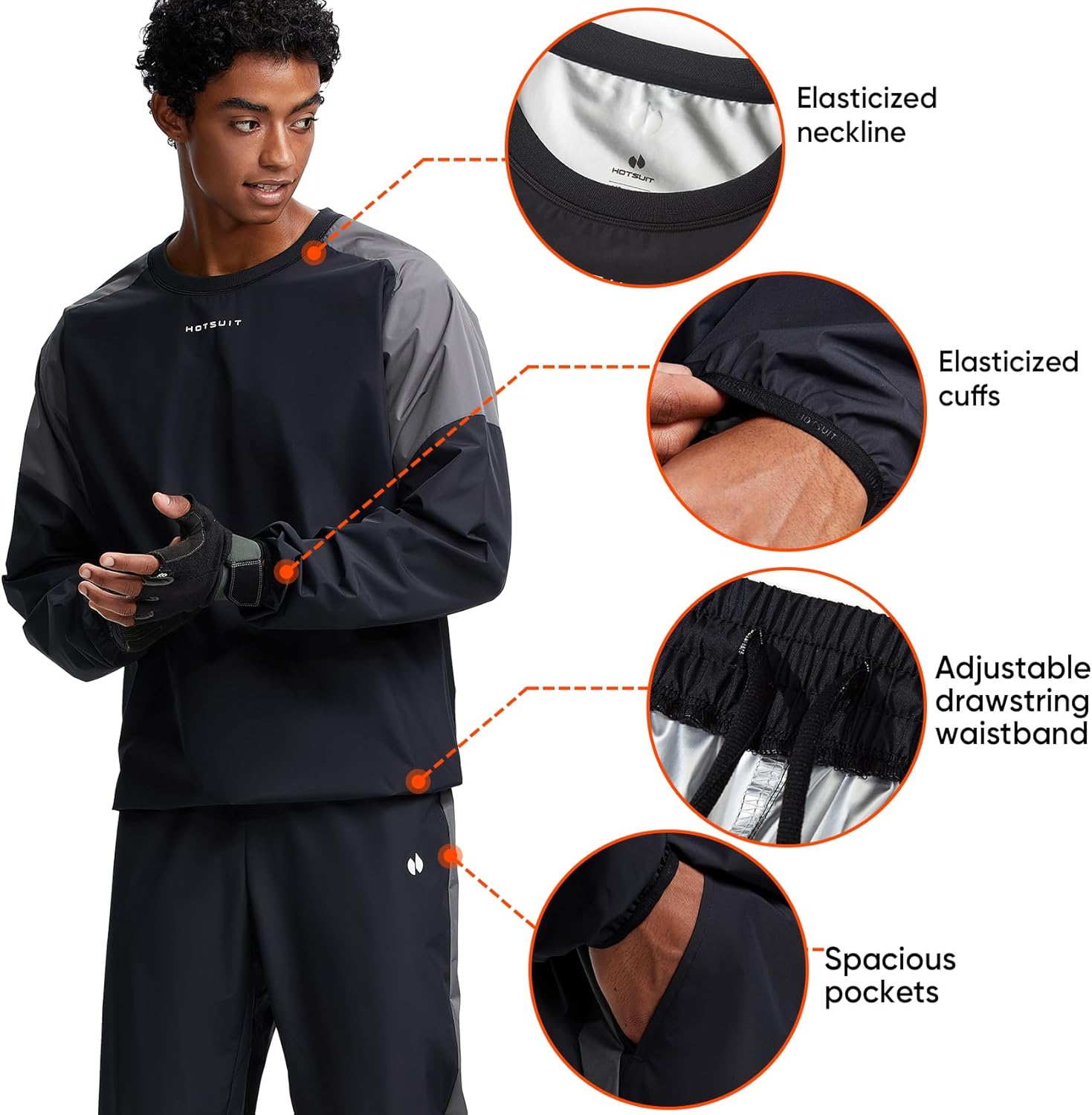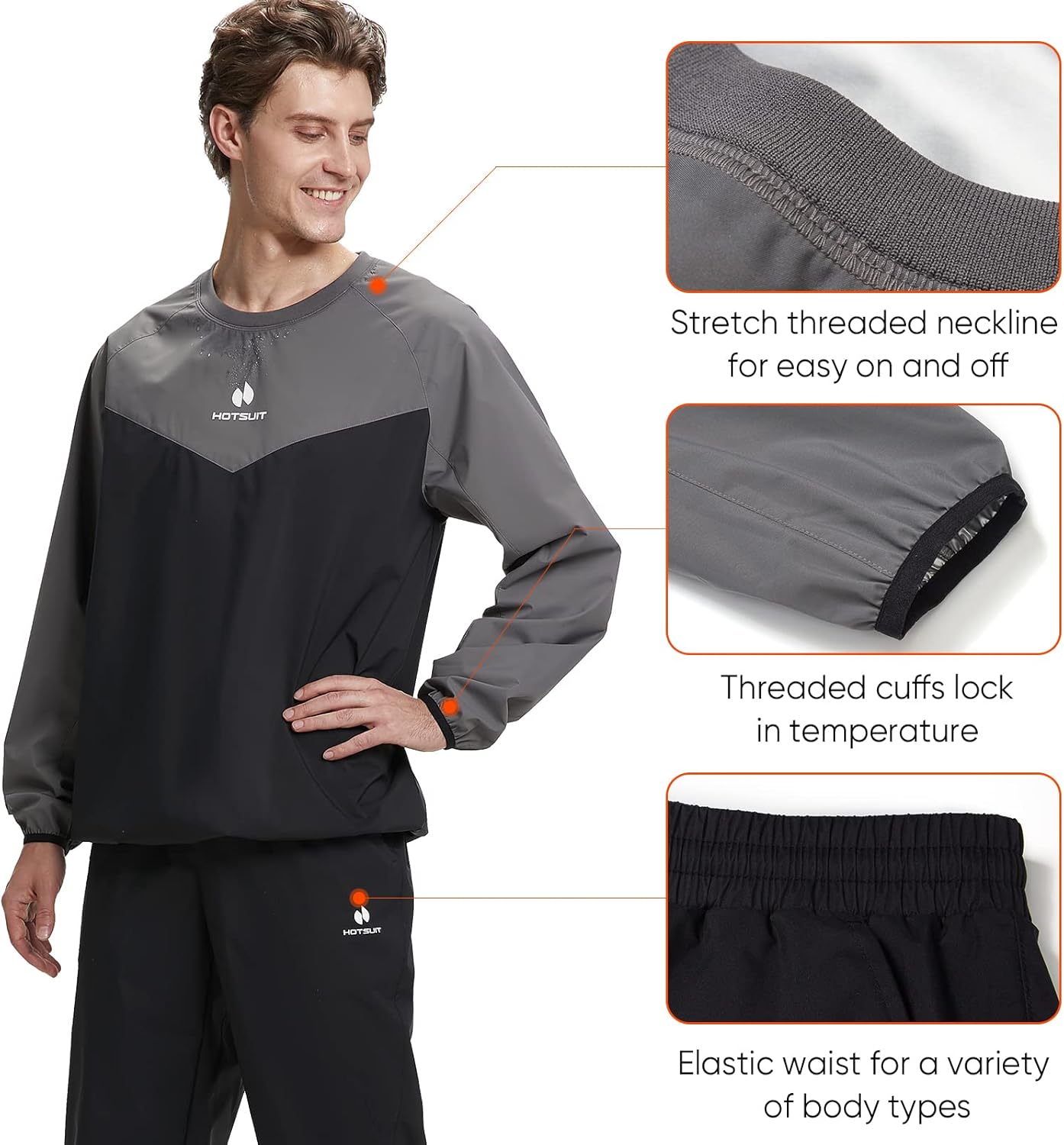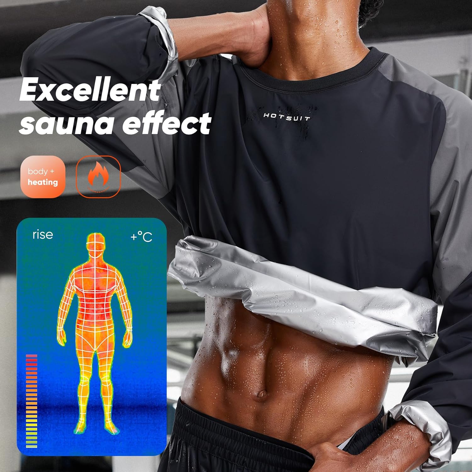 - Lightweight, Not Affect the Movement and Exercise At All: Specially designed with HOTSUIT Wear-resistant fabric Silver-Heat REG V1.0, reflect the heat to body, make you 5 times sweat. Wear this HOTSUIT men Sweat Suit can help increase body temperature. Anti-rip material allow you do any movements during exercise
