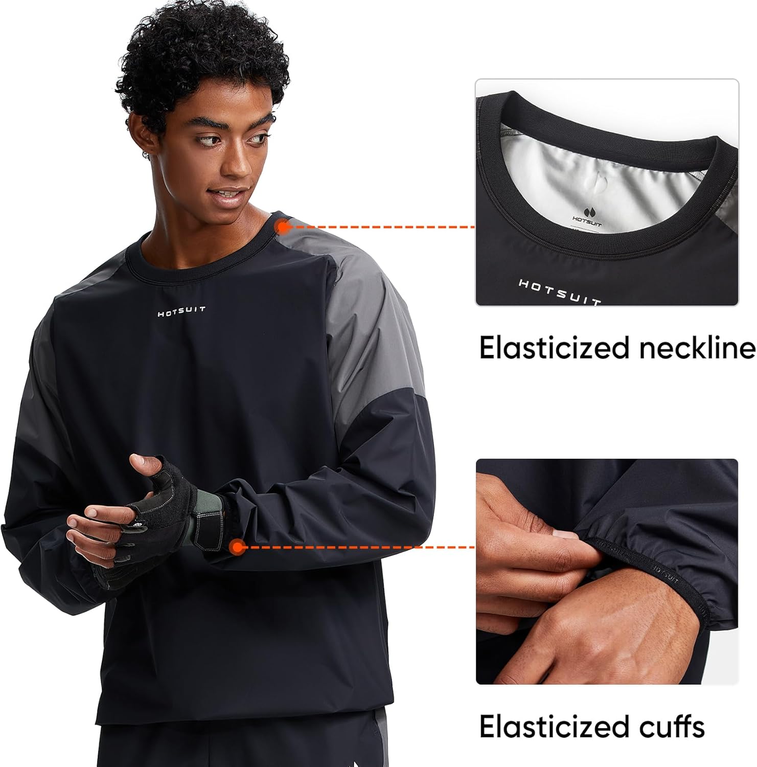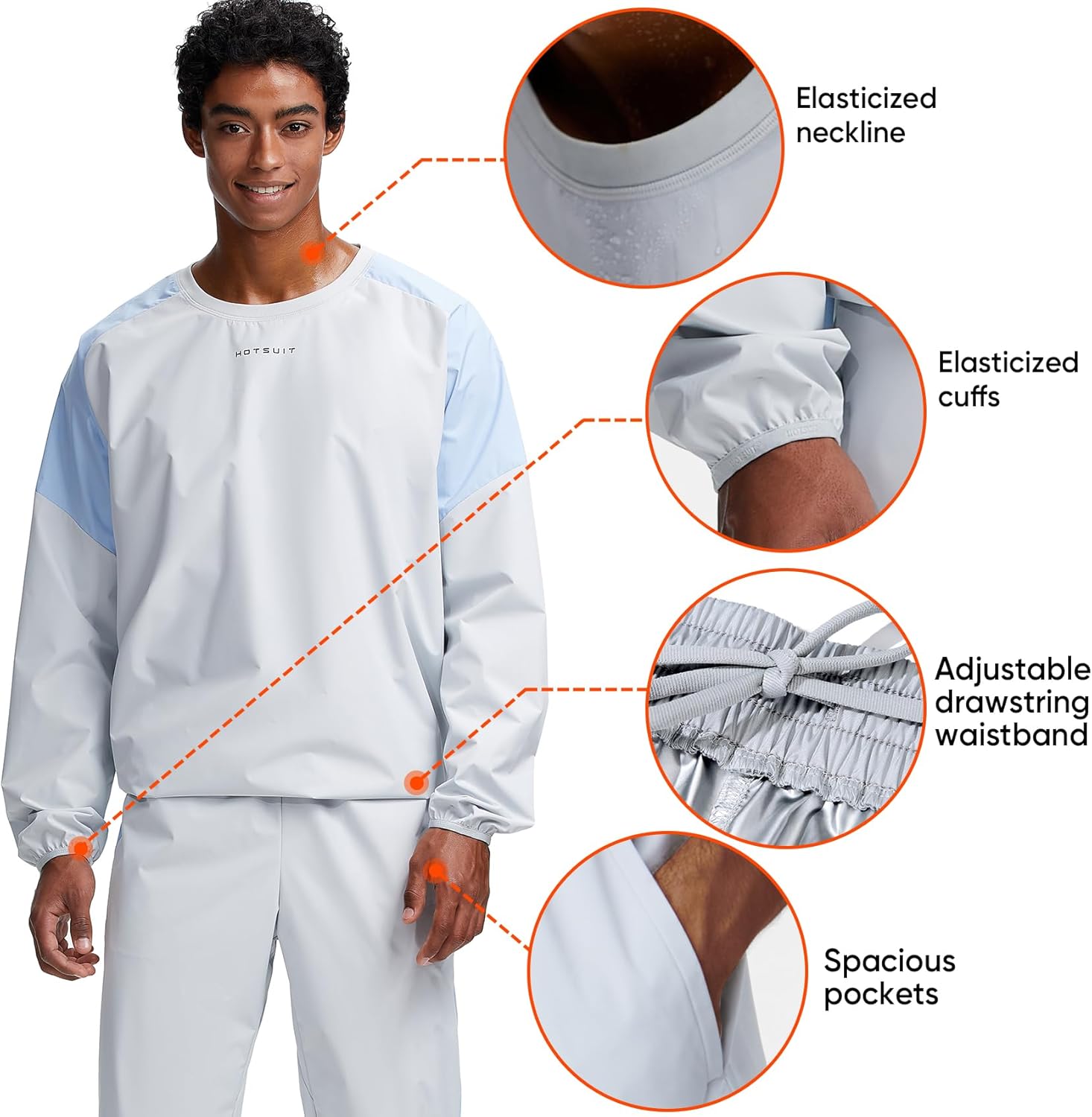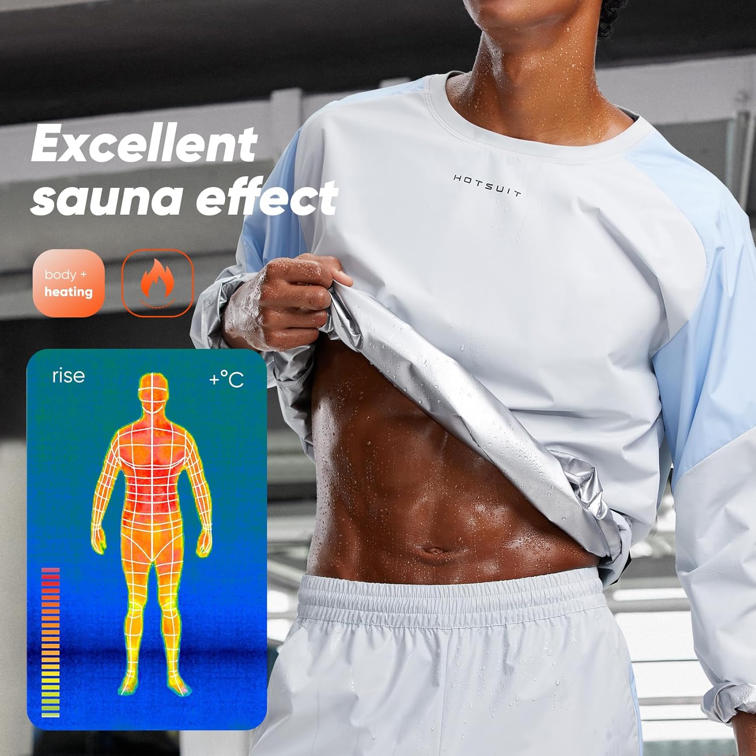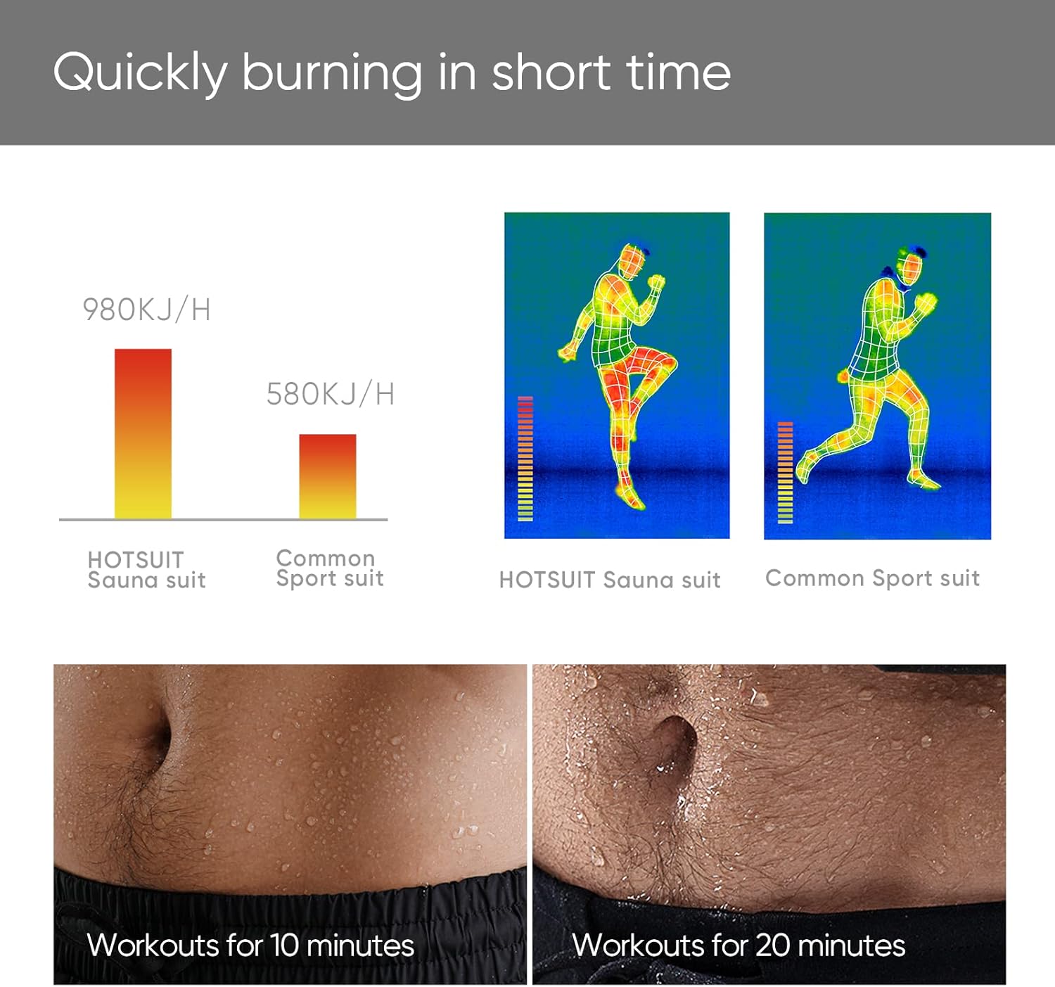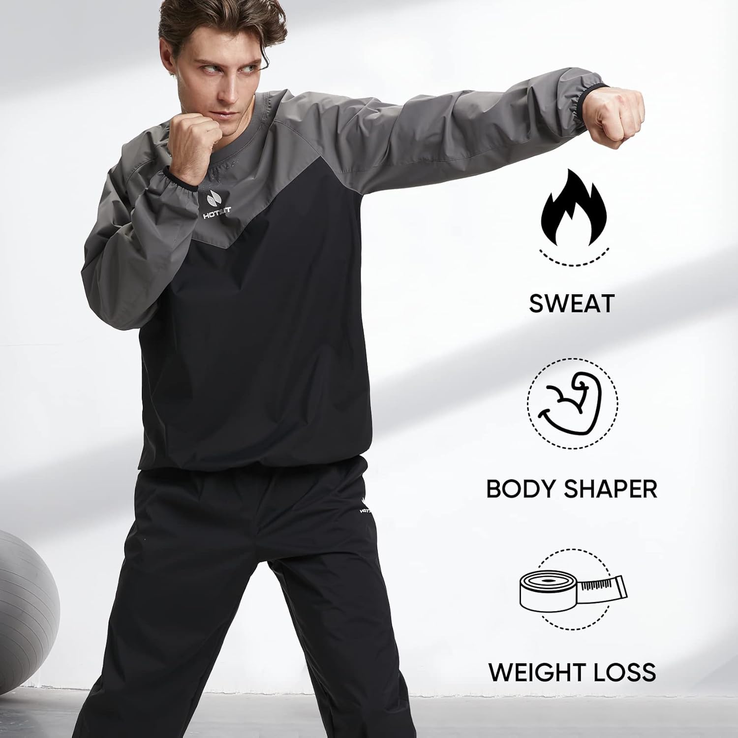 - Lightweight, Not Affect the Movement and Exercise At All: Specially designed with HOTSUIT Wear-resistant fabric Silver-Heat REG V1.0, reflect the heat to body, make you 5 times sweat. Wear this HOTSUIT men Sweat Suit can help increase body temperature. Anti-rip material allow you do any movements during exercise